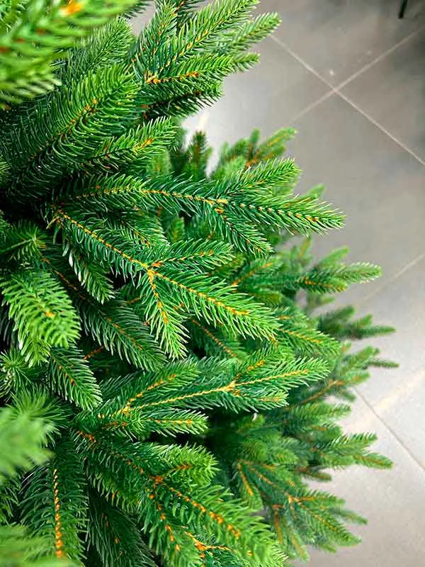Веточки имеют приятный зелёный оттенок с лёгким осветлением на кончиках — имитацией молодых побегов. В конструкции использовано несколько типов ветвей: с короткими и длинными иголочками. Это придаёт ели естественную пышность и густоту, при этом оставляя достаточно места для украшений.