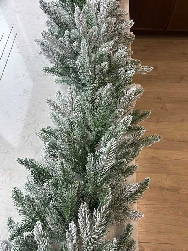Ветка изготовлена полностью из литых лапок. Покрыта искусственным снегом, который не осыпается и не имеет запаха.