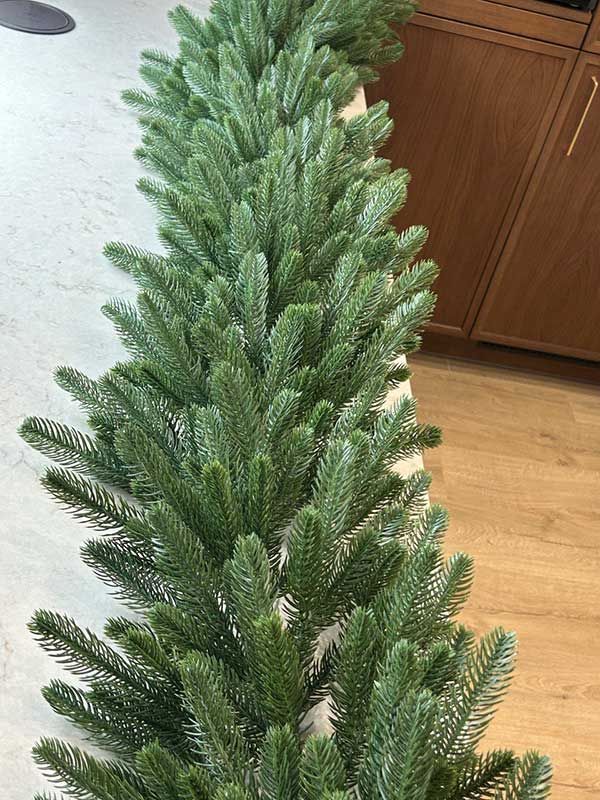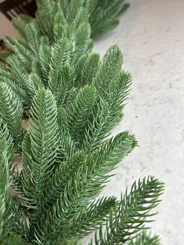 Красивая еловая ветка состоит полностью из литых веток. Кончики некоторых веточек осветлены, что придает ей нежности.